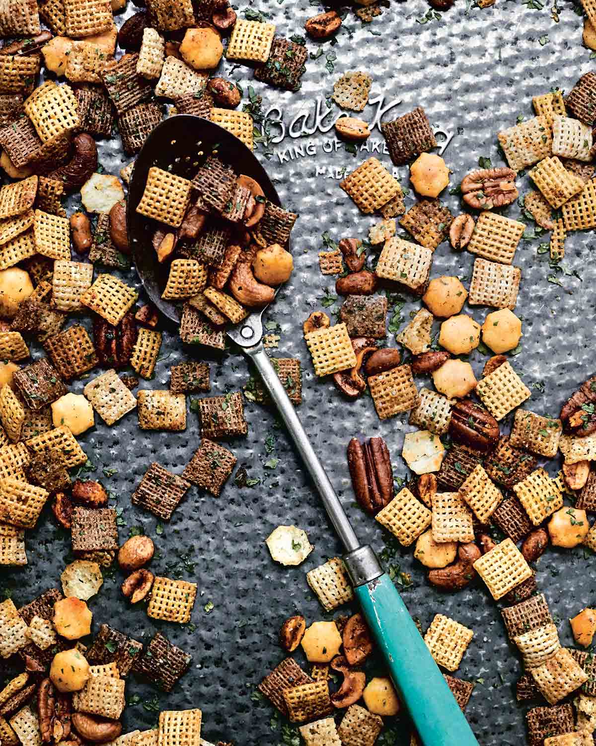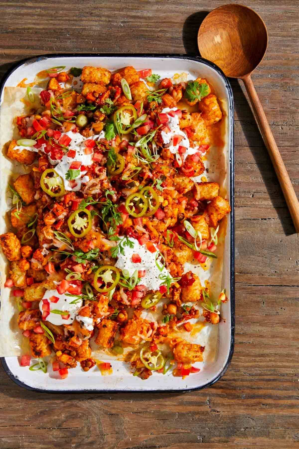 Choriqueso is a Mexican cheese dip topped with cooked chorizo sausage and a sprinkling of cilantro that is served with chips or warm tortillas. Makes a swell appetizer or even a meal unto itself.☞ Try This RecipeSpicy Chex MixThis homemade spicy Chex mix bears some resemblance to the original but is SO much more interesting. The combination of roasted nuts, toasted cereal, and the ideal amount of cayenne and chili seasoning means you may never go back to the classic. ☞ Try This RecipeTotchos ~ Tater Tot NachosTater Tot nachos takes one of the most loved (and easiest) dinners and gives it a crispy, crunchy, potato-filled boost. Topped with chili--vegetarian or beef, it's up to you--and loads of tomatoes, sour cream, and jalapeños, Totchos might be everyone's perfect meal.☞ Try This RecipeSeven Layer DipIt's a Mexican-inspired party staple made with beans, cilantro, cheese, avocado, tomatoes, and jalapeño. It's crazy easy to make as well as quite healthy. And it requires no cooking whatsoever. And this is the best darn rendition of it we've ever had.☞ Try This RecipeButtermilk Onion RingsThese buttermilk onion rings are briefly soaked in buttermilk and double-dipped in flour before frying to ensure an extra crisp coating and oh so tender onions within. Spectacular alongside burgers. Or simply on their own.☞ Try This RecipeHomemade Chicken Strips