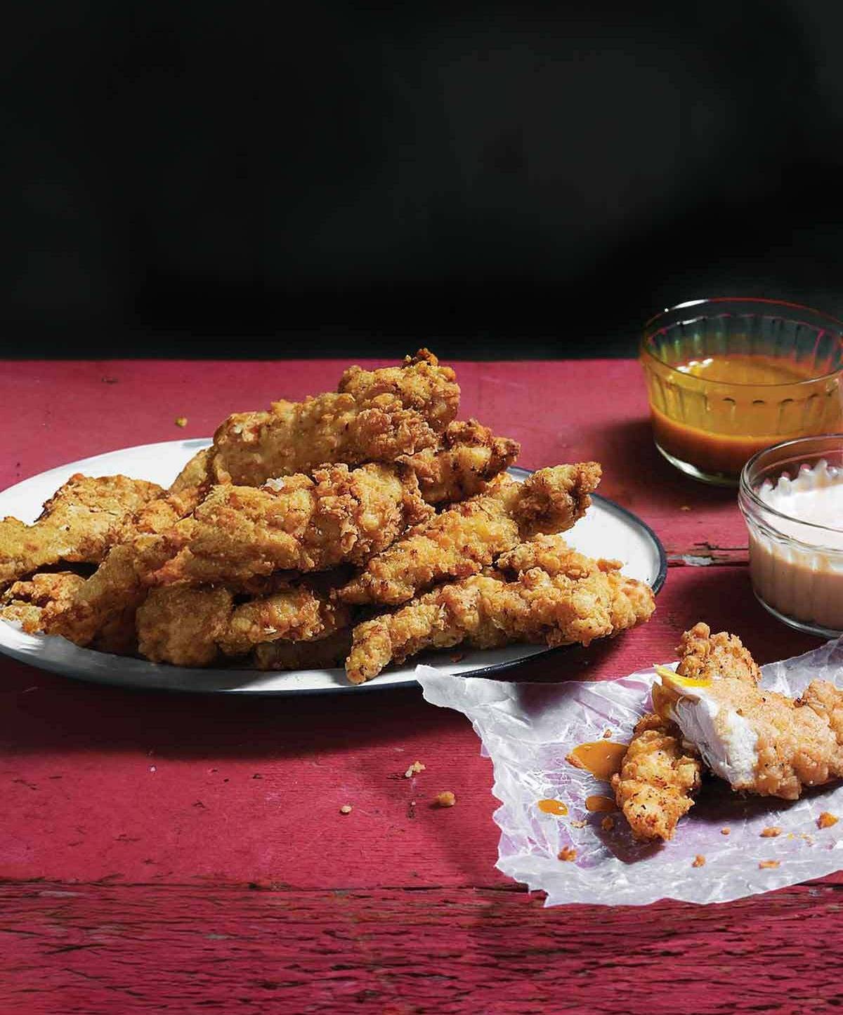 Homemade Chicken StripsHomemade chicken strips. When it comes to this type of quick weeknight dinner, we're all about respecting the yum factor.☞ Try This RecipeCornmeal Crusted Fried Chicken⭐⭐⭐⭐⭐ 4.8 from 10 votes This cornmeal-crusted fried chicken from Sydney Meers, thanks to a quick brine and an easy dredge in flour and cornmeal, turns out tender, juicy meat, and shatteringly crisp skin. Here's how to make it.☞ Try This RecipeSpanish Pork Loin RoastThis easy pork loin roast with paprika is great for entertaining as it requires minimal effort but will garner you rave reviews.☞ Try This RecipeCreamy Pork & Egg Noodles⭐⭐⭐⭐⭐ 4.64 from 19 votes For this easy meal, ground pork is browned with some mushrooms before stirring in broth and scraping up all the savory bits. Cooking the noodles in this saucy mix ensures that they are deeply flavorful from the inside out. Just at the end, Boursin cheese is added, delivering quintessential creaminess and complex herby flavor from one ingredient.☞ Try This RecipeDavid Leite’s Best Brined Roast Chicken⭐⭐⭐⭐⭐ 4.88 from 31 votes This best brined roast chicken is the best method for brining your chicken, as far as I know. It blends aromatic vegetables and herbs to the brining solution before adding your chicken. The meat gets infused with lush flavors and juiciness beyond the average brined chicken.☞ Try This RecipeBarbecued Beef Back Ribs⭐⭐⭐⭐⭐ 4.75 from 36 votes These barbecued beef back ribs are easy to make. They're coated with a homemade spice rub and slowly grilled to perfection.☞ Try This RecipeBraised Pork Loin With Rosemary⭐⭐⭐⭐⭐ 4.87 from 15 votes This braised pork loin with rosemary is a simple Sunday supper. Pork loin is studded with rosemary, seared with onion and garlic, and braised in wine until tender. A pan sauce of pork drippings, vinegar, olive oil, and mustard lends a nice acidity to the dish.☞ Try This RecipeKorean-Style BBQ RibsKorean-style BBQ ribs are sticky, sweet, and tangy. Ginger, honey, brown sugar, and vinegar come together to infuse juicy ribs with Korean flavors. They're cooked in foil so the cleanup is easy-peasy, too.☞ Try This Recipe |