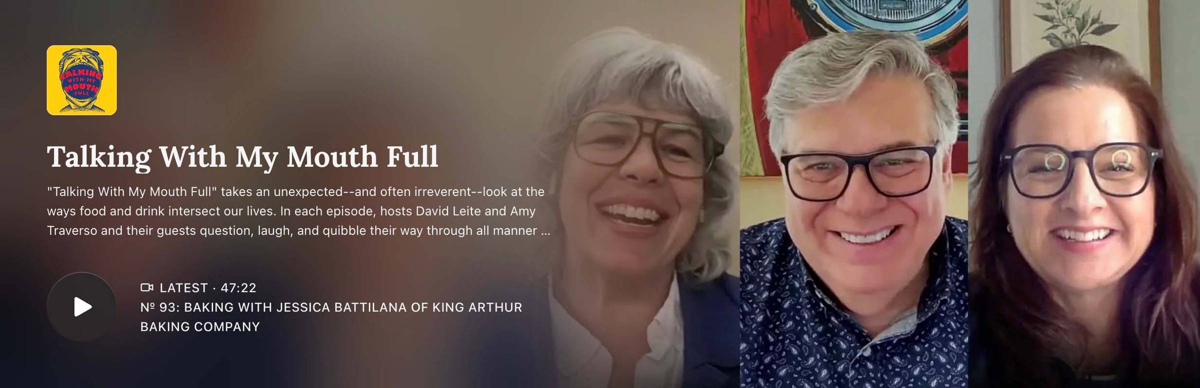 Podcast: Jessica Battilana of King Arthur Baking Co.First, I'd like to apologize to all of you who accepted the invitation for yesterday's podcast at 12 PM ET. We had more technical difficulties than a Netflix live event. It took Amy and me two hours to figure it out. By then, we both were wiped out, but we were determined to broadcast. So here it is… A day late.